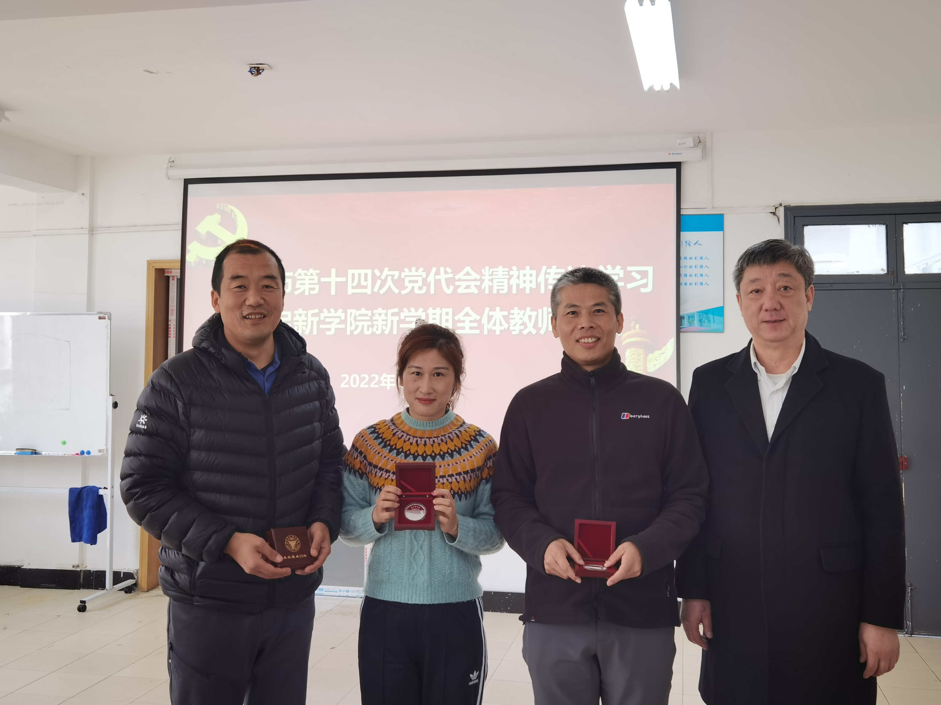 会议期间,胡征宇书记代表公司为在校服务20年的教师代表颁发纪念章,并和教师进行了座谈交流。